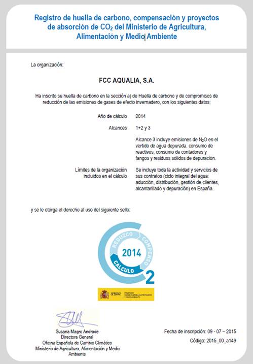 Aqualia se ha convertido en el primer operador que calcula de forma global, (para toda la organización) y en la totalidad de actividades desarrolladas por la Compañía, su huella de carbono. Así lo acredita la Oficina Española de Cambio Climático del Ministerio de Agricultura, Alimentación y Medio Ambiente (MAGRAMA), en...