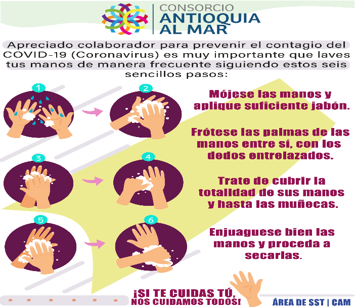Specifically, in the Antioquia al Mar consortium, which executes the Toyo Tunnel project (Colombia), campaigns, activities and talks have been implemented for all company collaborators and their contractors, in order to report on the current situation in the country regarding to infections, signs and symptoms of infected personnel, protocols for attention in case of infections, use of masks, as well as awareness of the need for handwashing, this being one of the most effective measures to stop the spread of said virus.