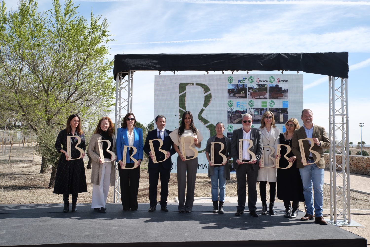 At the ceremony, a badge was handed out to the companies that have sponsored the micronurseries that have spent 45 days in different streets of the city and that, now, have all come together to form the "B" of the Metropolitan Forest on the plot of Valdegrulla and that will also serve as a nursery and for informative activities.