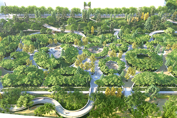 El espacio creado sobre la M-30 se conectará con los márgenes a través de ocho pasarelas y contará con zonas peatonales, ajardinadas y estanciales en las que se plantarán 591 nuevos árboles y más de 48.800 arbustos. Además, habrá más de 2.150 m2 de praderas y se instalarán juegos infantiles, equipamientos de calistenia, una pequeña zona de actuaciones al aire libre con un graderío de poca altura, dos kioscos, fuentes, bancos y papeleras. Asimismo, se dotará al nuevo espacio de alumbrado tipo led de alta eficiencia energética.