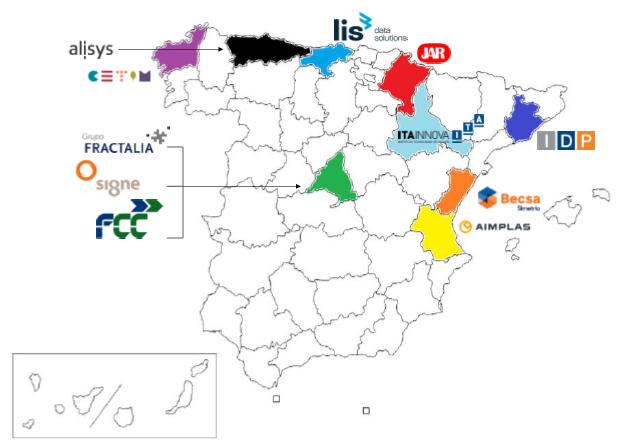 El consorcio se ha definido en base al alto grado de expertise que poseen todas las empresas, todas ellas referentes en sectores específicos. Además, las empresas y organismos de investigación que participan en el proyecto se encuentran distribuidas a lo largo del territorio español.