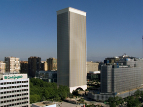 La imagen ha sido reflejada en la fachada orientada hacia el Paseo de la Castellana, gracias a dos focos de 6.000 vatios de potencia cada uno...